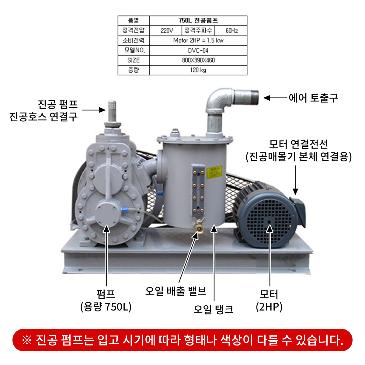 ※ 진공펌프는 입고 시기에 따라 형태나 색상이 다를 수 있습니다.